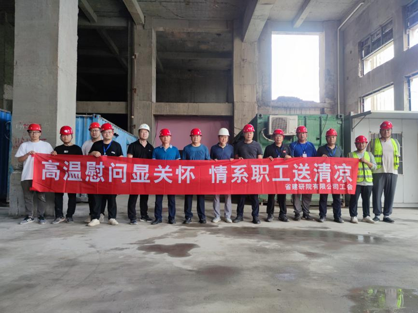 院公司總經理葉金成同志及同行領導頂著烈日、冒著酷暑,來到工地一線實地調研指導,并為全體參建員工送來關懷慰問。巖土所所長李金山同志將項目概況和現場進展情況進行了介紹。